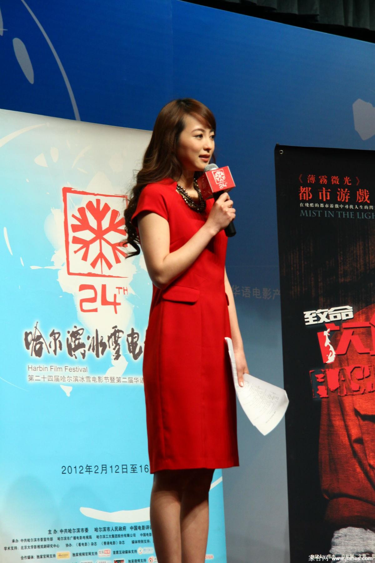 李蜜身着修身红裙侧身而立,裙摆摇曳间勾勒出优雅的腰臀曲线,回眸瞬间眼神温柔而坚定